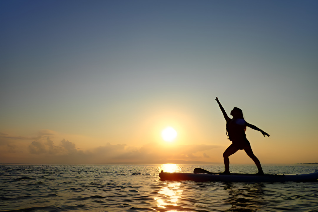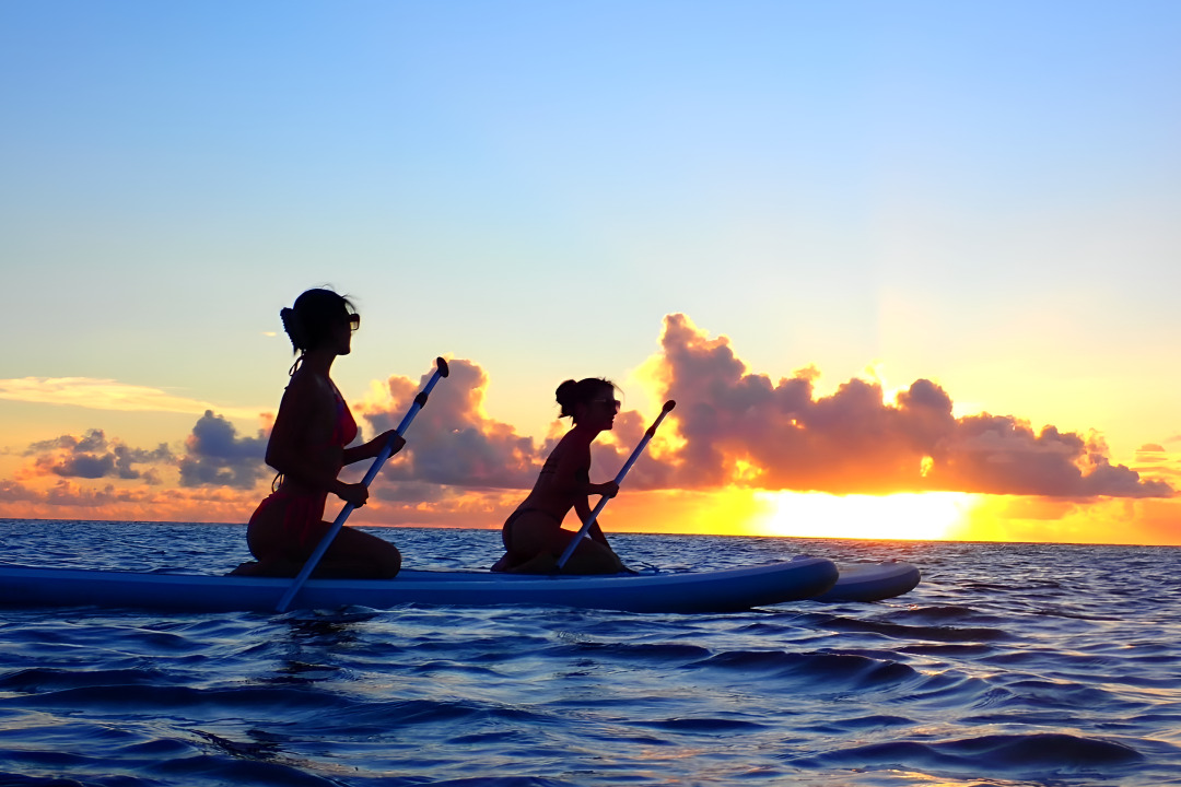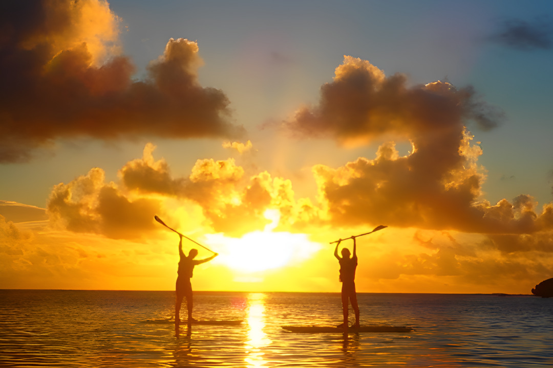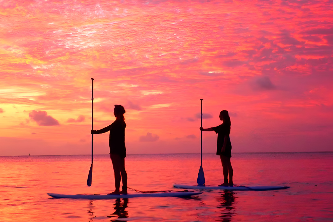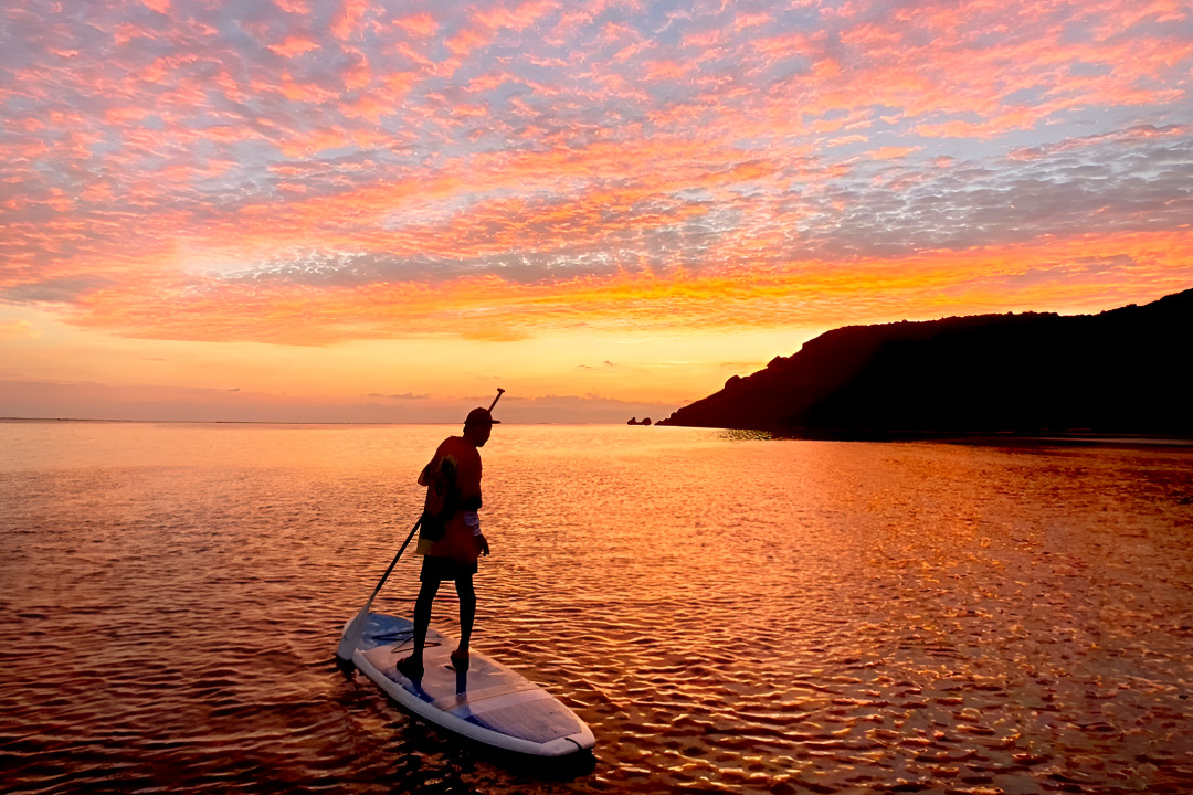 미야코지마의 투명한 바다 위를 부드럽게 미끄러지듯 떠다니며,일출의 고요함을 SUP 위에서 온몸으로 느껴보세요.