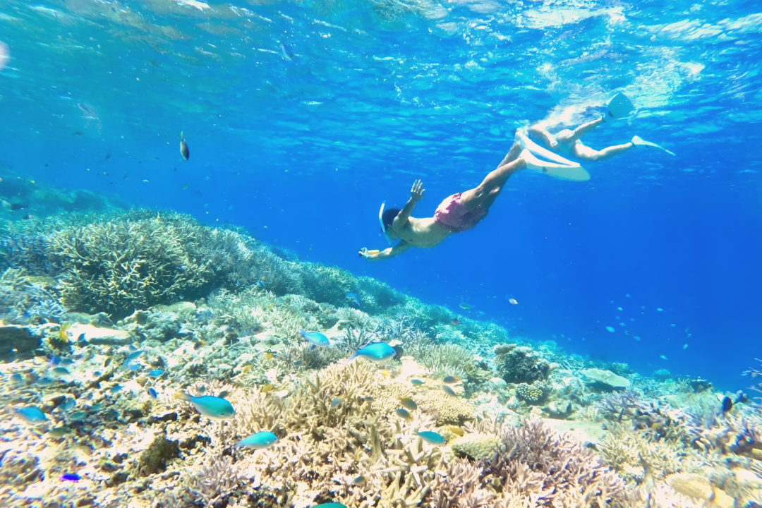 푸른빛으로 물든 신비로운 동굴 속에서 열대어와 함께 특별한 스노클링을 즐길 수 있습니다.